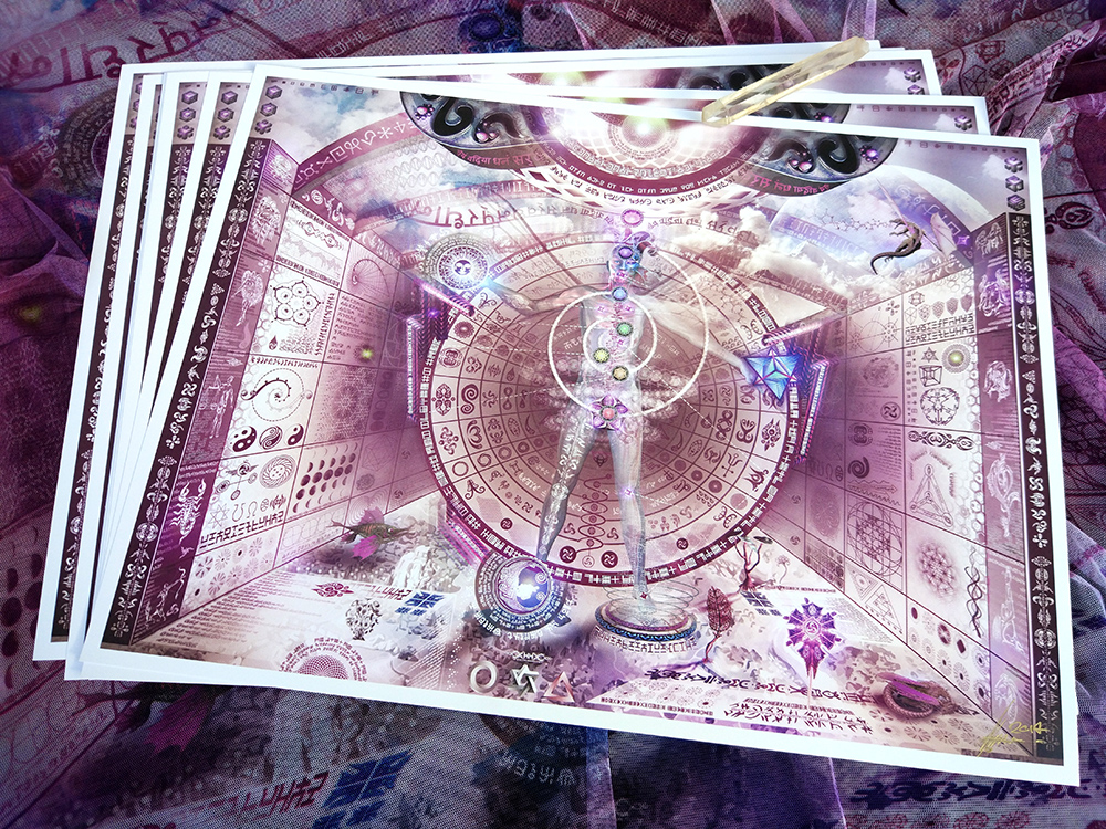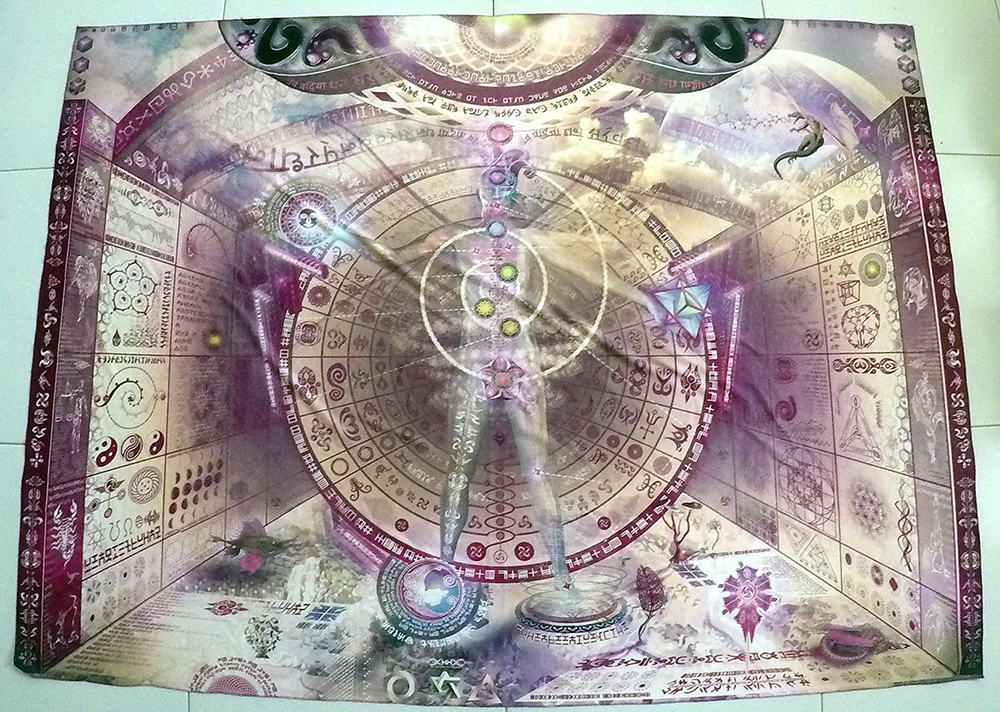 This was very much influenced and inspired by the works of Athanasius Kircher and Robert Fludd. It is an attempt to syncretize the relation between the macro and micro, the signs of the zodiac to chakra centers and their correlation to organs, cymatic patterns and frequencies.